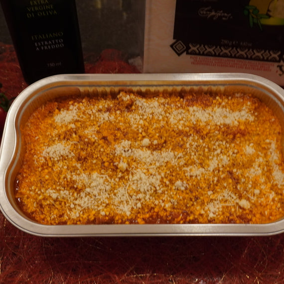 Ingrédients: cannelloni (farine de blé, semoule, oeufs, viande de boeuf, viande de porc, mix de légumes, ricotta, parmesan, sel, poivre), sauce bolognese (huile de tournesol, viande de boeuf, viande de porc, sel, poivre, mix de légumes, vin rouge), béchamel, parmesan