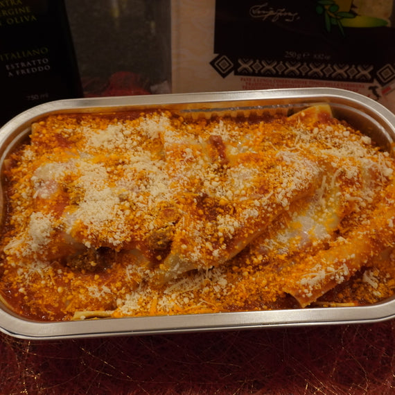 Ingrédients: lasagna (farine de blé, semoule, oeufs), sauce bolognese (huile de tournesol, viande de boeuf, viande de porc, sel, poivre, mix de légumes, vin rouge), béchamel, parmesan