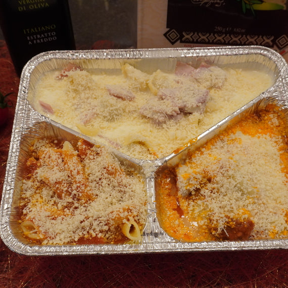 Ingrédients: variation de pâtes maison (capp. crème jambon, penne arrabiata, ravioli sughetto nostro)