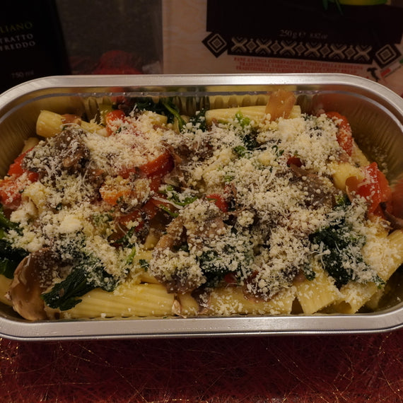 Ingrédients: maccheroni (farine de blé), huile d'olives, légumes, ail, parmesan