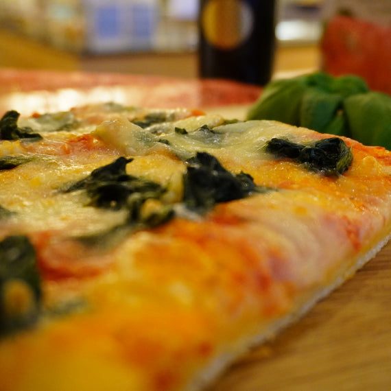 Ingrédients: farine de blé, levure, tomate, huile de tournesol, mozzarella, saucisse italienne, épinards italien