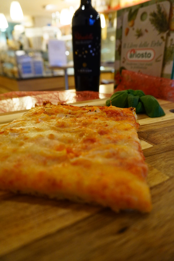 Ingrédients: farine de blé, levure, tomate, huile de tournesol, mozzarella, oignons